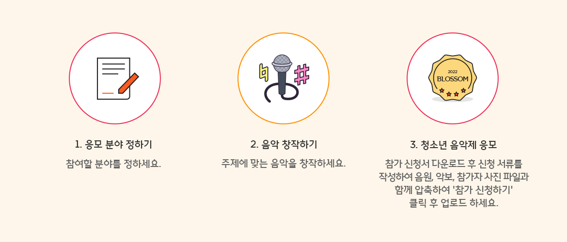 ‘2022 블러썸 청소년음악제’는 장르에 무관하게 참여할 수 있습니다.