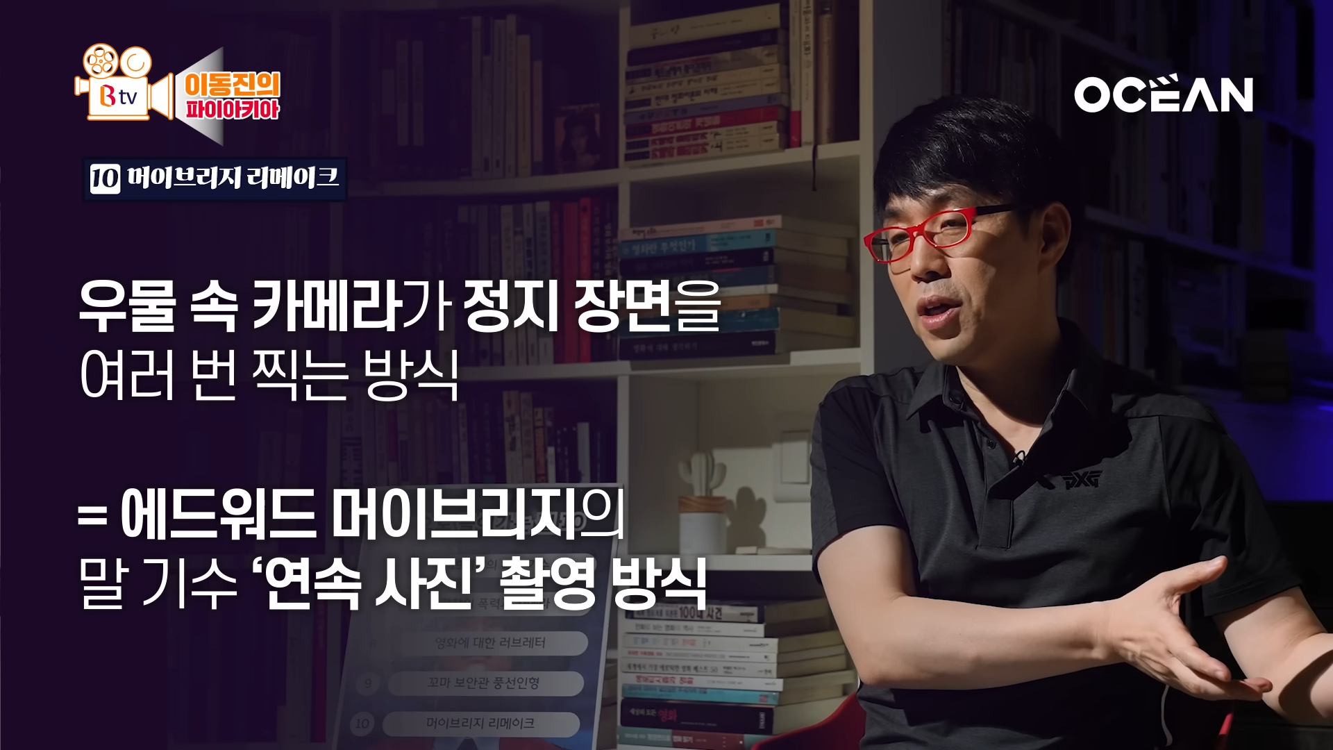 우물 속 카메라가 ‘진 재킷’을 여러 번 촬영하는 장면은 마치 머이브리지의 연속 사진과 같아 보이죠.