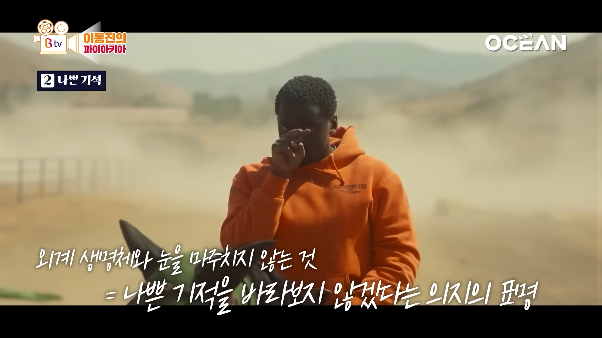 <놉>은 외계 생명체와 눈을 마주치지 않는 것으로 ‘나쁜 기적’에서 눈을 돌리라고 말하고 있습니다.