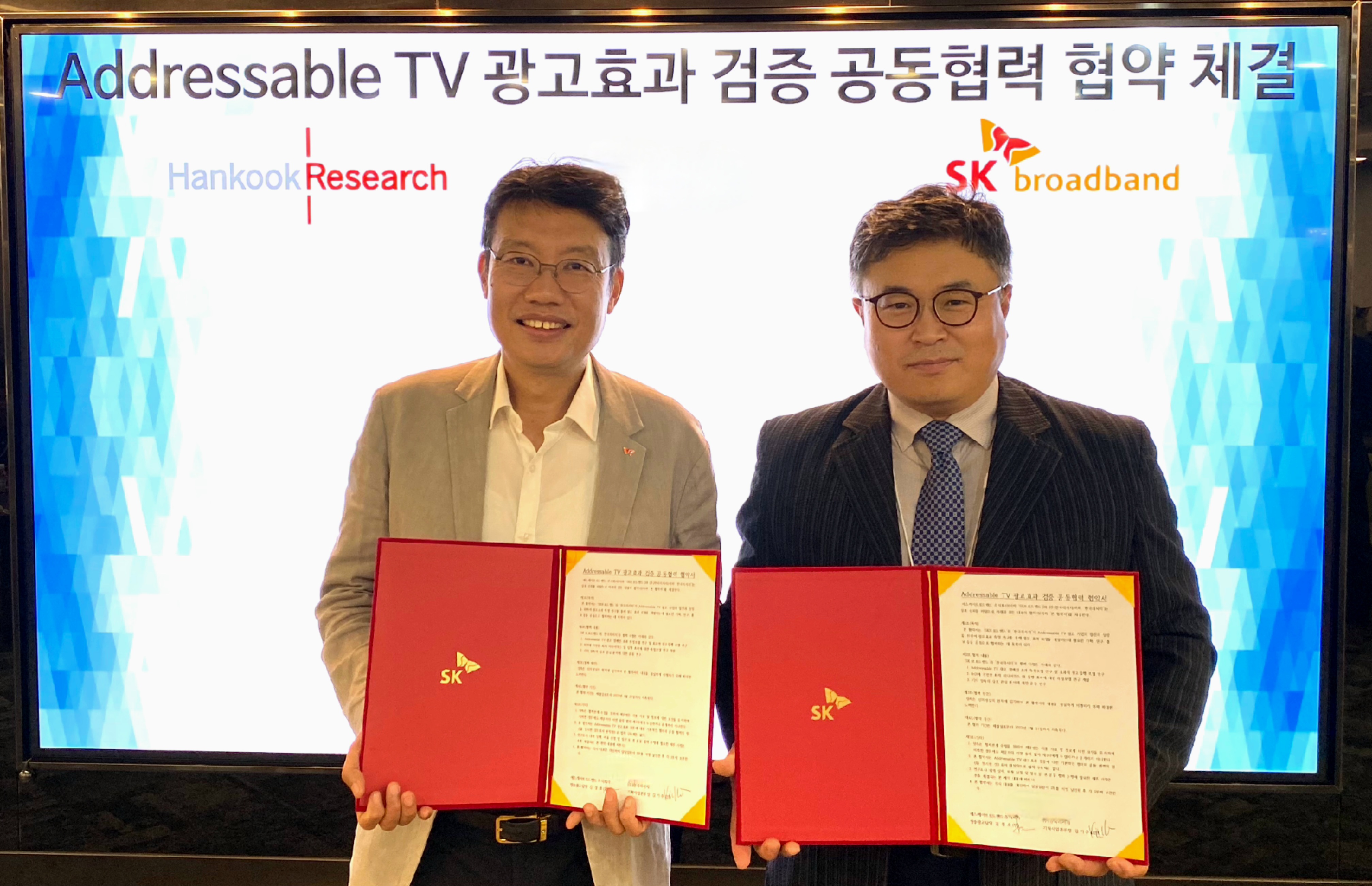 SK브로드밴드(대표이사 사장 : 최진환, www.skbroadband.com)는 국내 대표 여론조사 전문기관인 한국리서치와 어드레서블TV 광고 효과 측정 및 모델 개발을 위한 업무협약을 체결했다고 5일 밝혔다.