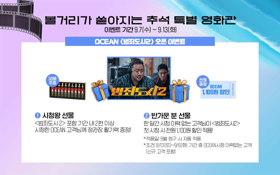 무한리필 릴레이 쿠폰, 할인 영화와 패키지, OCEAN <범죄도시2> 이벤트 등