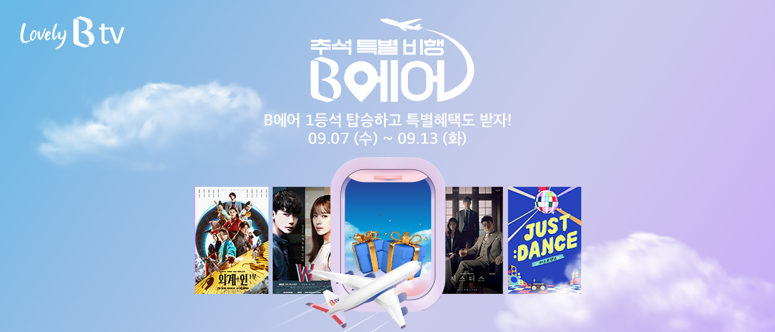 B tv 추석 특별 비행 B에어에서는 월정액 고객님을 위한 BVIP 특별 혜택은 물론,