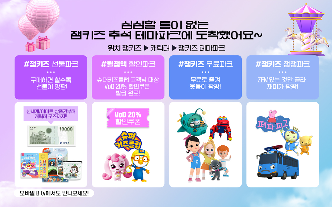 잼키즈에서도 추석 특별 비행 B에어 고객님을 위한 선물과 할인, 무료 혜택이 준비되어 있습니다.