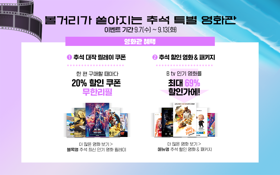 추석 특별 비행 B에어 추석 특별 영화관에서는 다양한 할인과 선물이 여러분을 기다립니다.