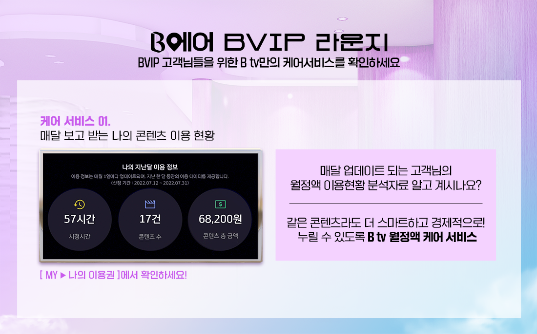 월정액 BVIP 고객님을 위한 특별 혜택과 영화, 드라마, 예능, 키즈, 시니어, 라이프+ 등