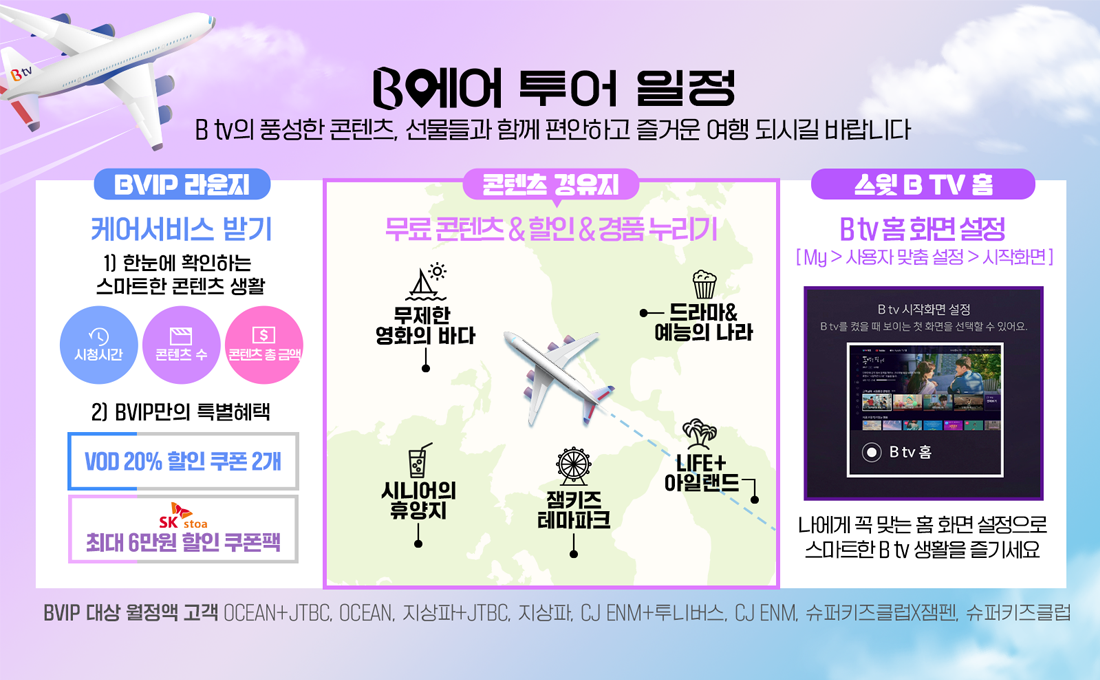 B tv 추석 특별 비행 B에어에서는 월정액 고객님을 위한 BVIP 특별 혜택은 물론,
