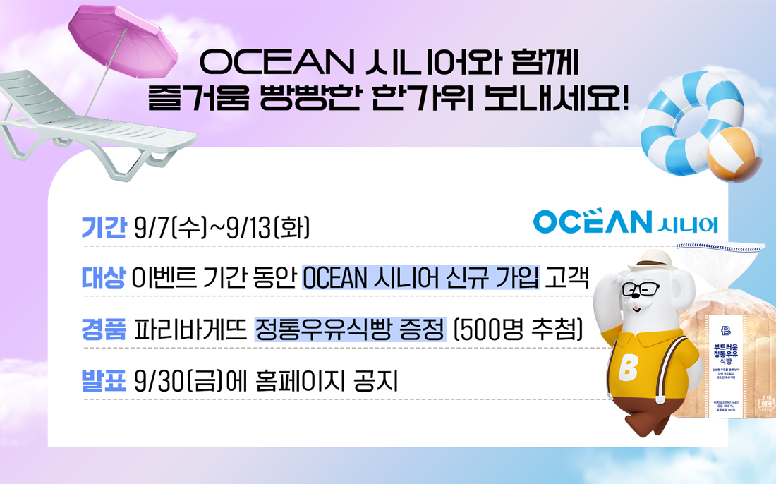 B에어 기간 동안 OCEAN 시니어에 신규 가입하신 고객 500분께,