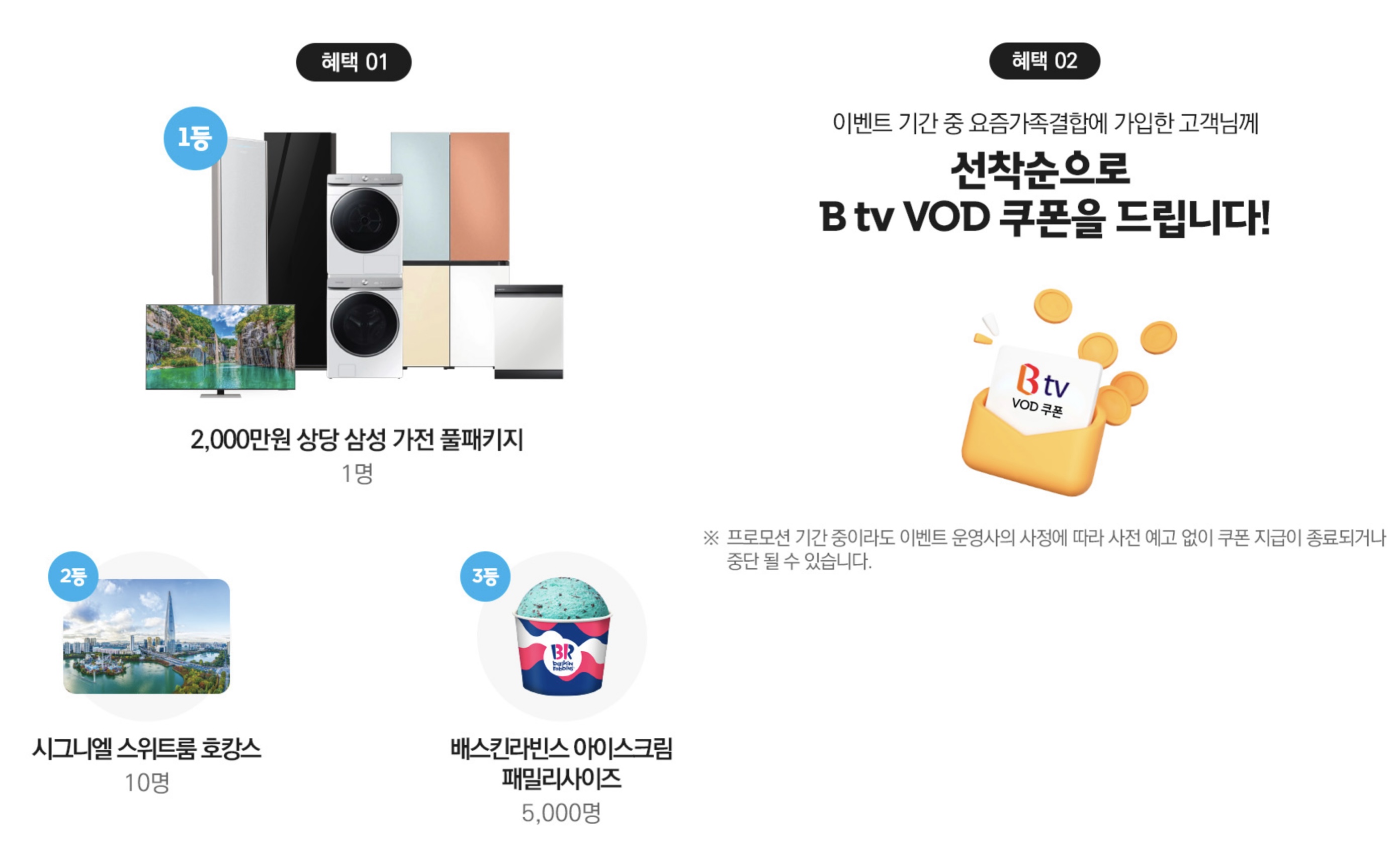 또또, 기가계열 인터넷(1G & 500M)과 ‘B tv All’을 같이 이용할 경우 추가 혜택이 더 있어요~