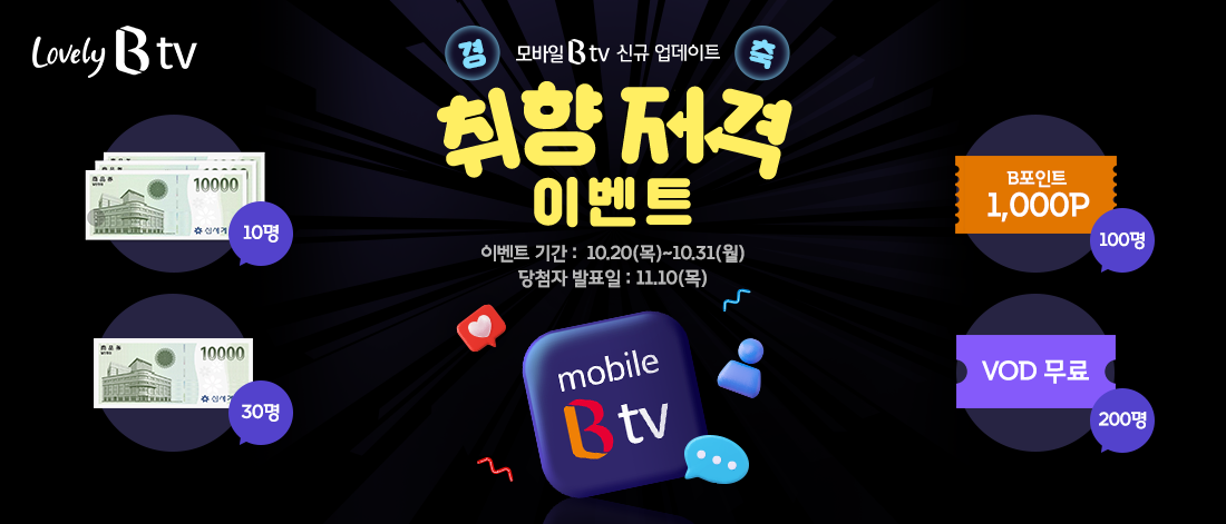 모바일 B tv 업데이트 기념 ‘취향 저격 이벤트’에 참여할 준비 되셨나요?