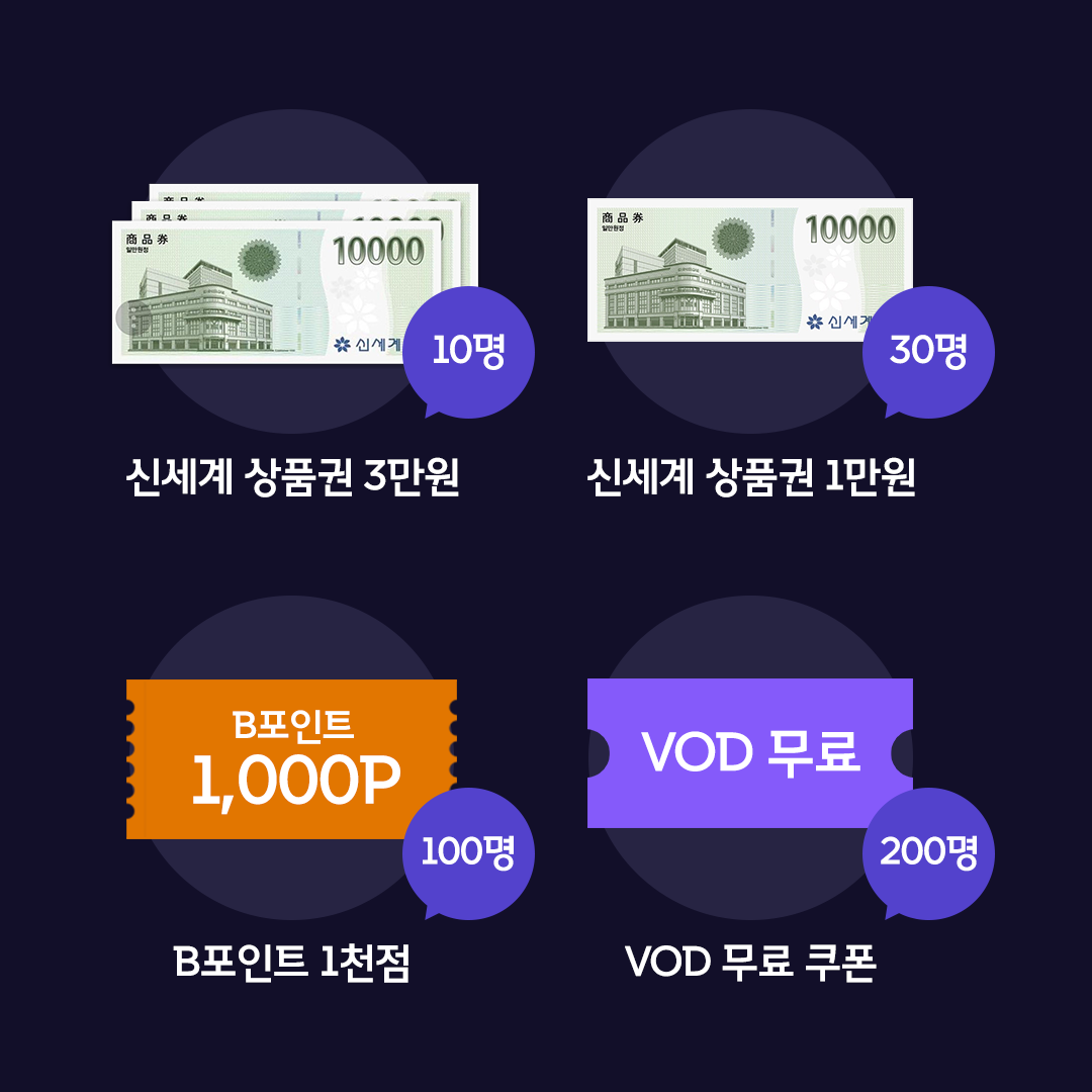신세계 상품권 1만원권부터 VOD 무료 쿠폰, 유용한 B포인트까지, 지금 확인해볼까요?