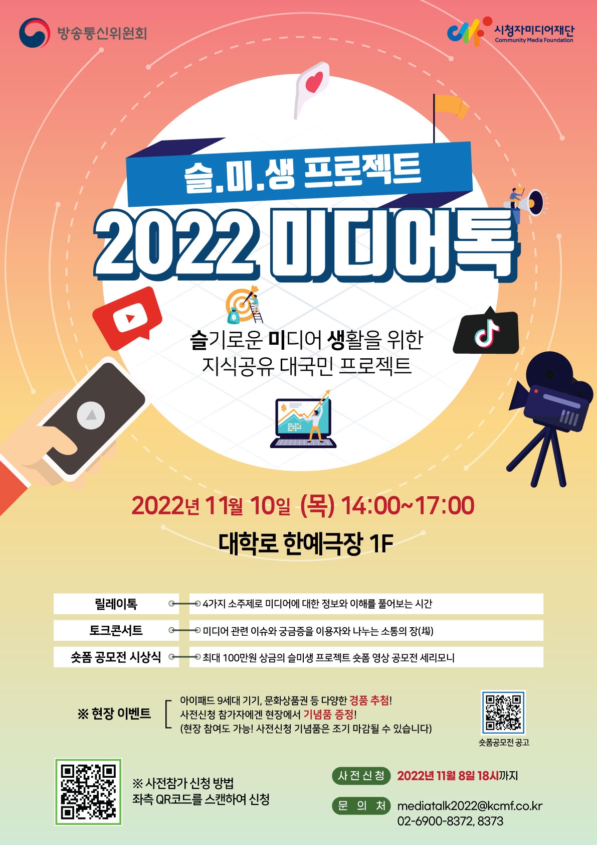 현장에서는 미디어에 대한 릴레이톡, 토크콘서트, 숏폼 공모전 시상식이 진행됩니다.