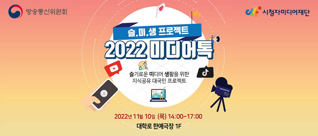 현장에서는 미디어에 대한 릴레이톡, 토크콘서트, 숏폼 공모전 시상식이 진행됩니다.
