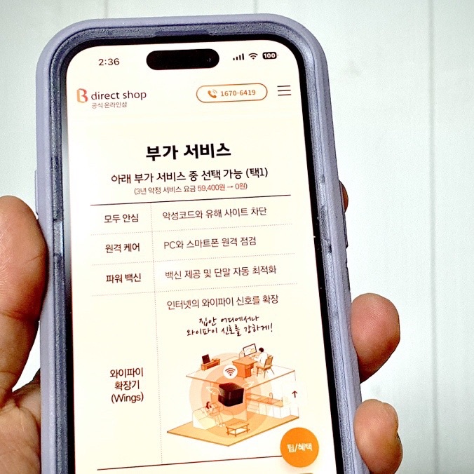 인터넷 가입요금과 이 윙즈 부가서비스를 조합하면 따로 메시 공유기를 사는 것보다 가성비가 상당히 올라갑니다.