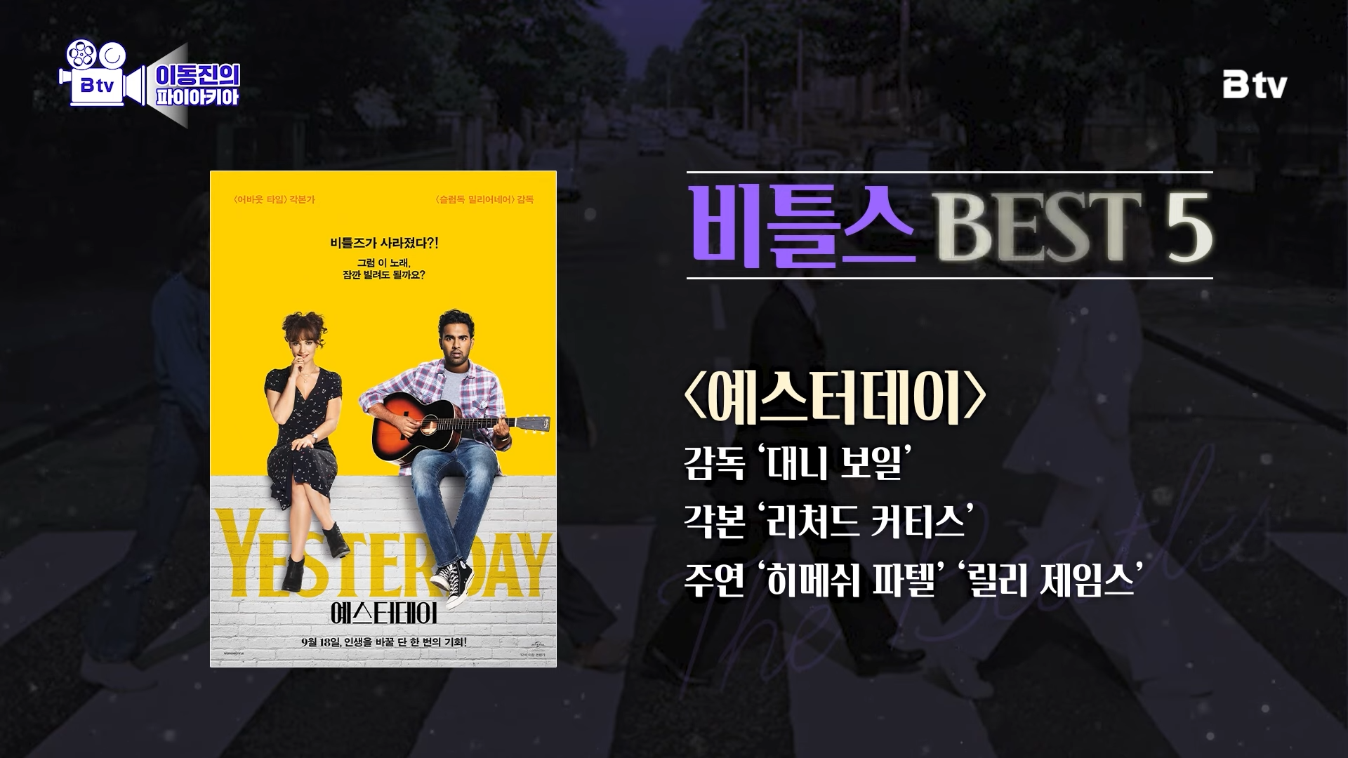 오늘은 이동진 평론가가 선정한 ‘비틀스’와 관련된 영화 BEST 5를 준비해 보았는데요.