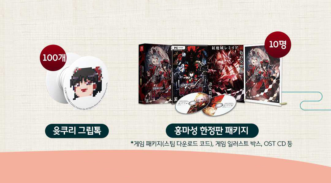 덕후들의 심장을 저격하는 <홍마성 레밀리아 비색의 교향곡> 한정판 굿즈 이벤트에 참여하세요.