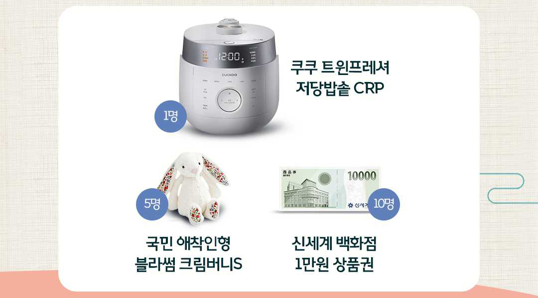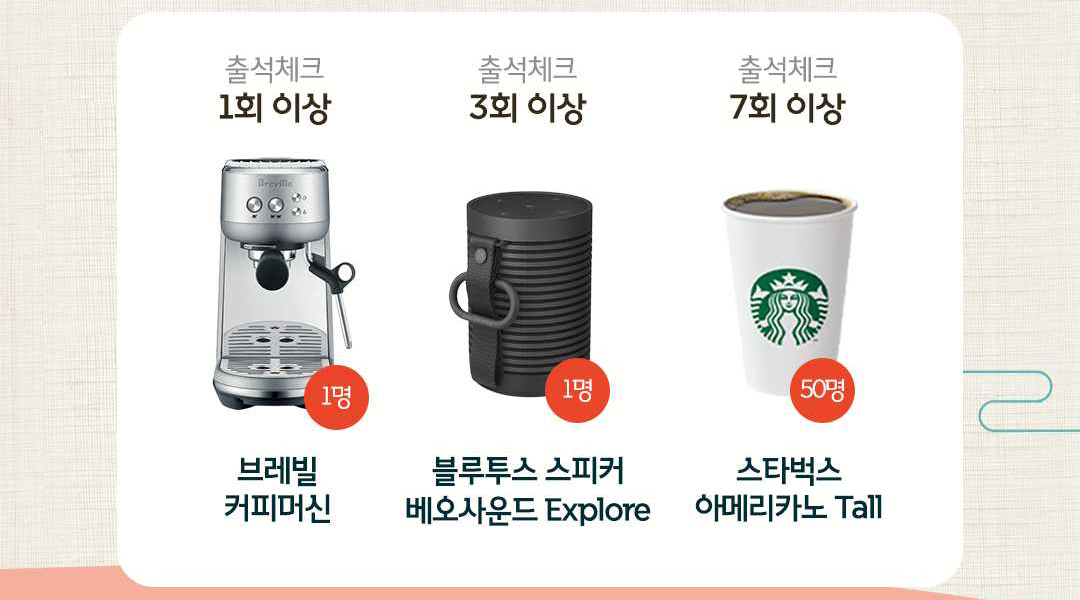 브레빌 커피머신, 베오사운드 Explore, 쿠쿠 트윈프레셔 저당밥솥 등 다양한 경품도 받으세요!
