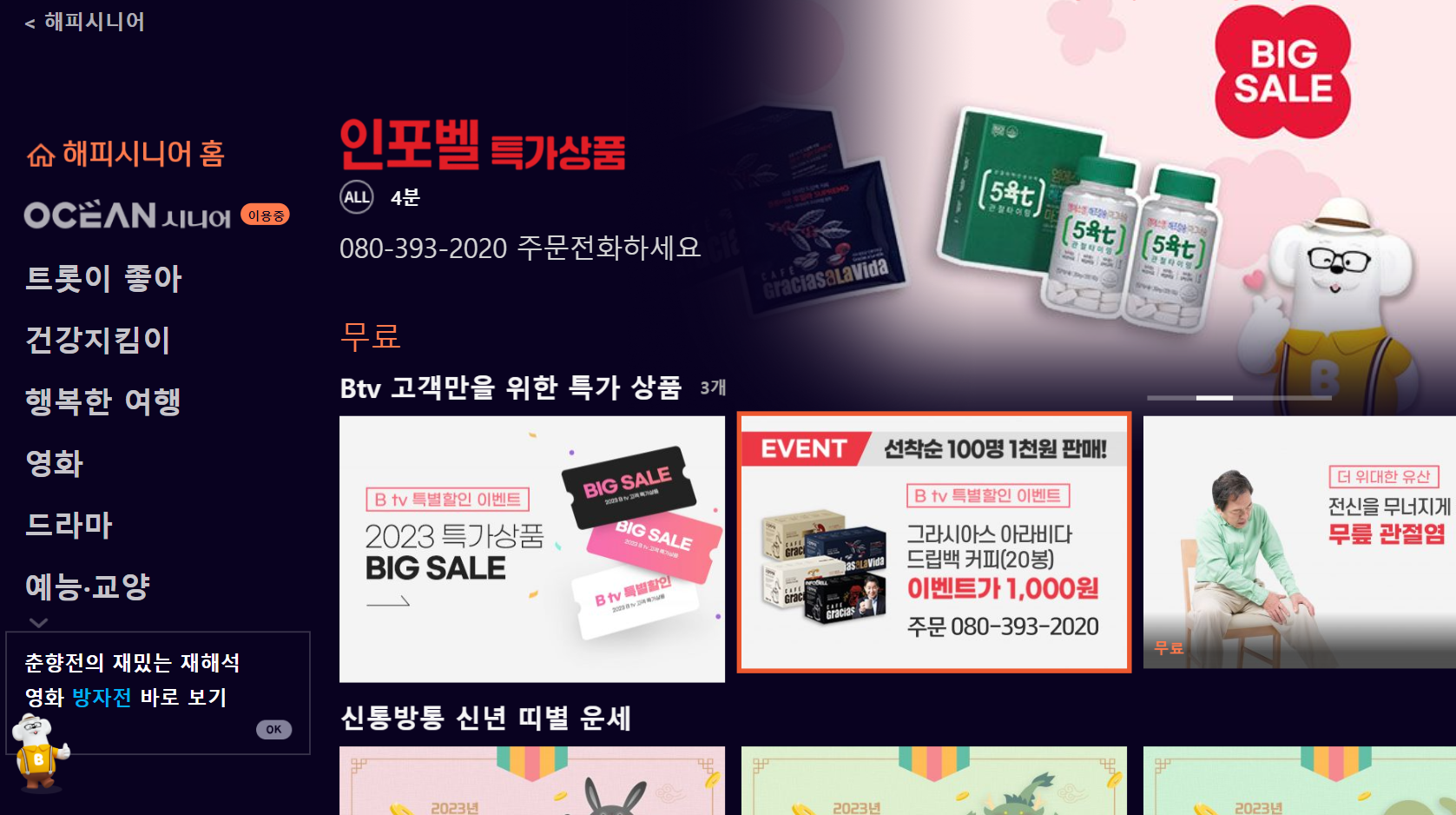 2023년 2월 17일 금요일, B tv 해피시니어 고객을 위한 특가상품 BIG SALE 이 시작되었습니다!