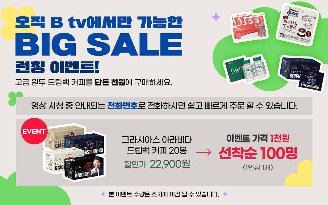 B tv 고객을 위한 BIG SALE 런칭을 기념해, 선착순 구매 이벤트가 진행됩니다. (선착순 100명)