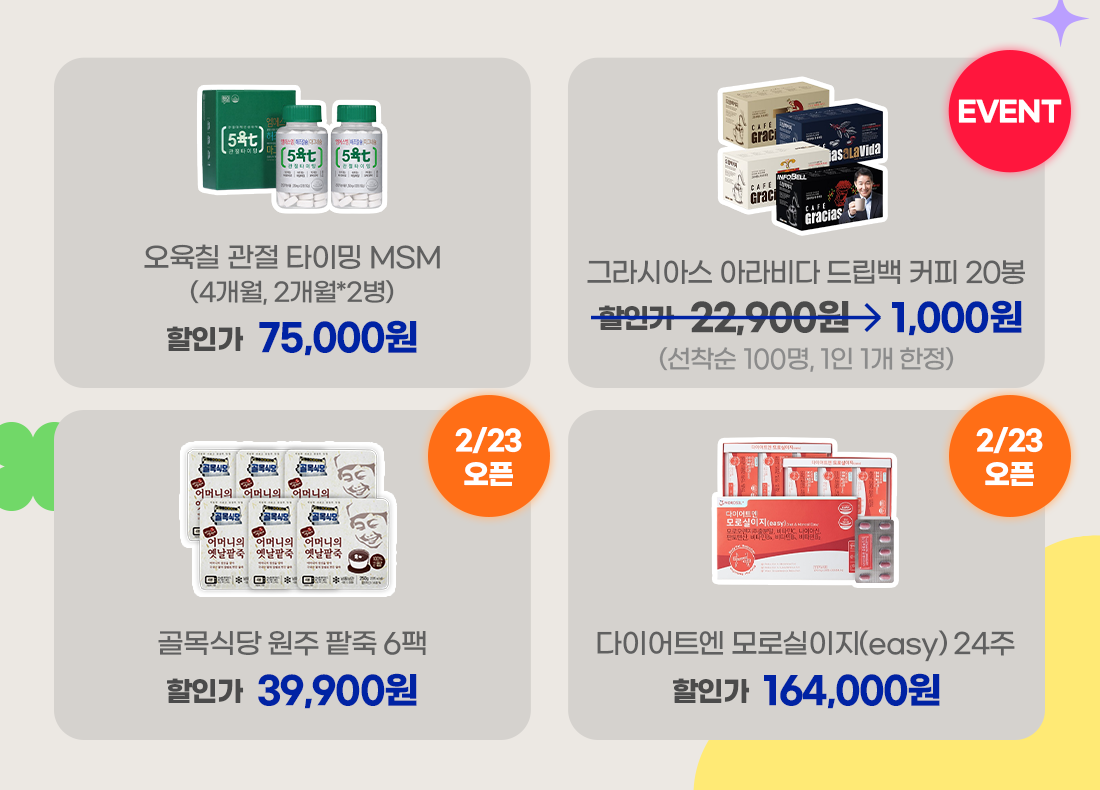다이어트엔 모로실이지(easy) 24주는 2월 23일부터 할인가 164,000원에 구매하실 수 있어요.