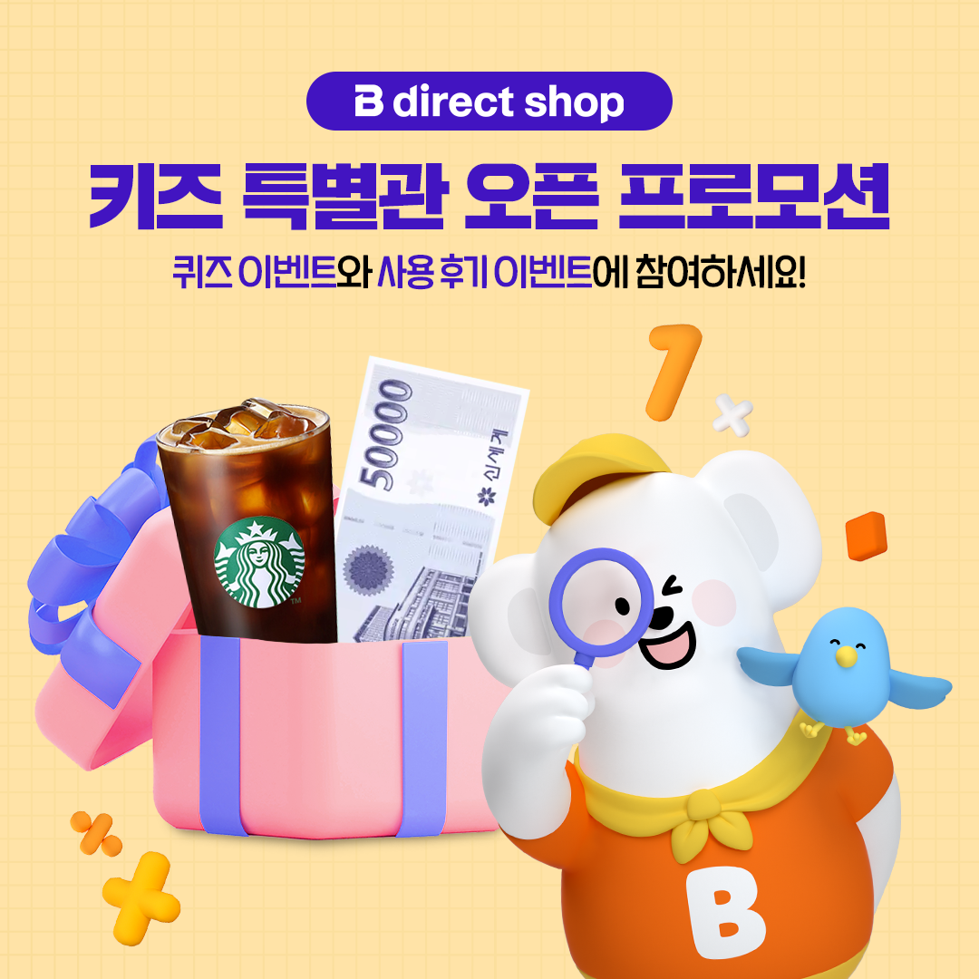 안녕하세요 여러분! 오늘은 B다이렉트샵 키즈 특별관 오픈 기념 이벤트를 소개해 드리려고 해요.