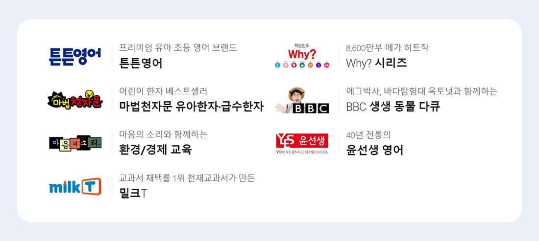 6만여 편의 캐릭터&놀이 콘텐츠와 2만여 편의 프리미엄 교육 콘텐츠를 보유하고 있어요.