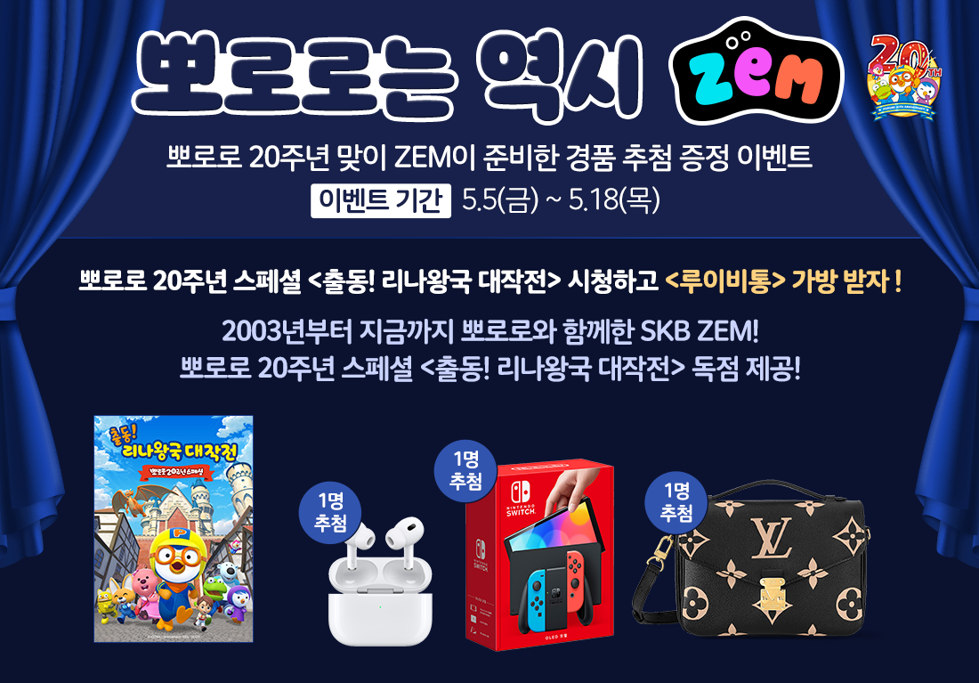 하나, 2023년 20주년을 맞이한 뽀로로를 위해 ZEM이 준비한 경품 추첨 이벤트!