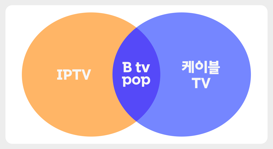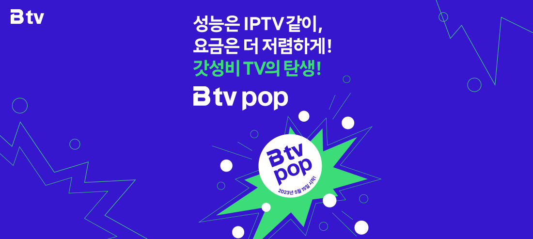 IPTV 대비 7,000원 저렴한 금액으로 IPTV 품질의 서비스를 갖춘 B tv pop으로 업그레이드!