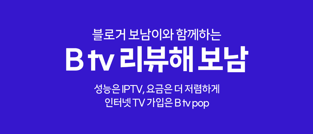 만약 더 저렴한 IPTV 요금제를 찾고 계시거나, 현재 사용 중인 케이블 TV의 성능에 만족하지 못하셨다면, B TV pop 강력~ 추천해요.