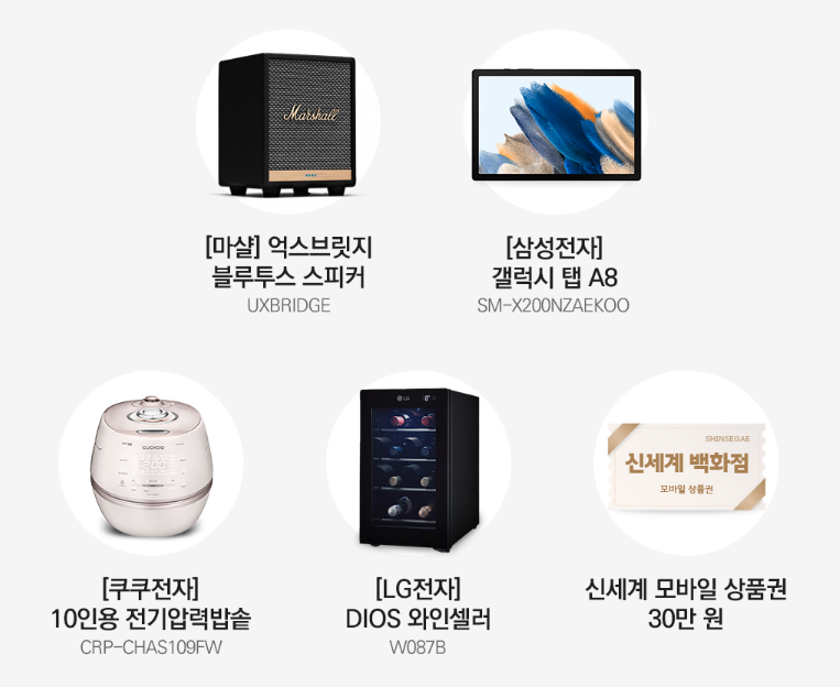 B tv 콘텐츠를 무료 체험할 수 있는 이용권과 캐시, 두 번째 TV를 할인 가격에 살 수 있는 기회를 제공하고 특별히 사은품 구성( 1)도 좋습니다. ^^ 마샬 블루투스 스피커랑, 삼성전자 갤럭시 탭 A8, 백화점 상품권(30만 원) 등 마음에 드는 것을 선택하면 됩니다. ^^