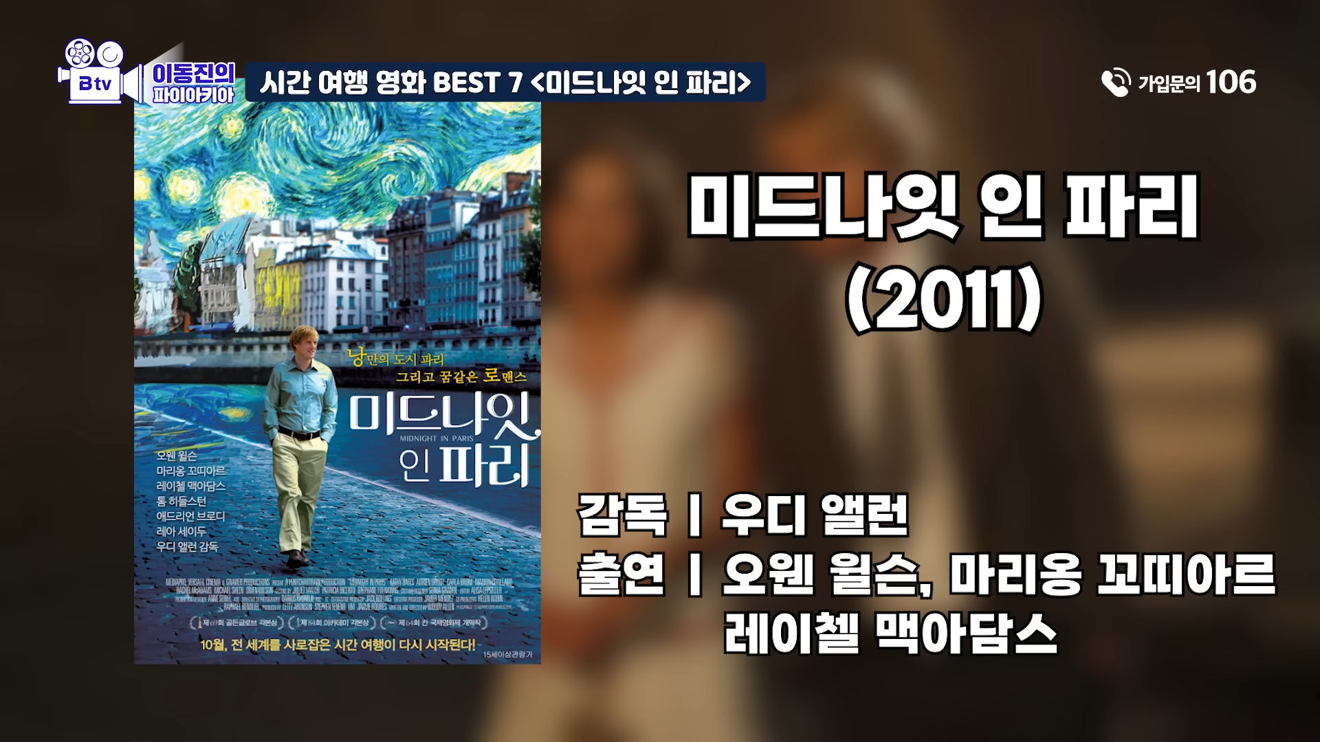 [B tv 이동진의 파이아키아] 시간여행 영화 올타임 베스트! (롤라 런, 시간을 달리는 소녀, 미드나잇 인 파리, 엣지 오브 투모로우)