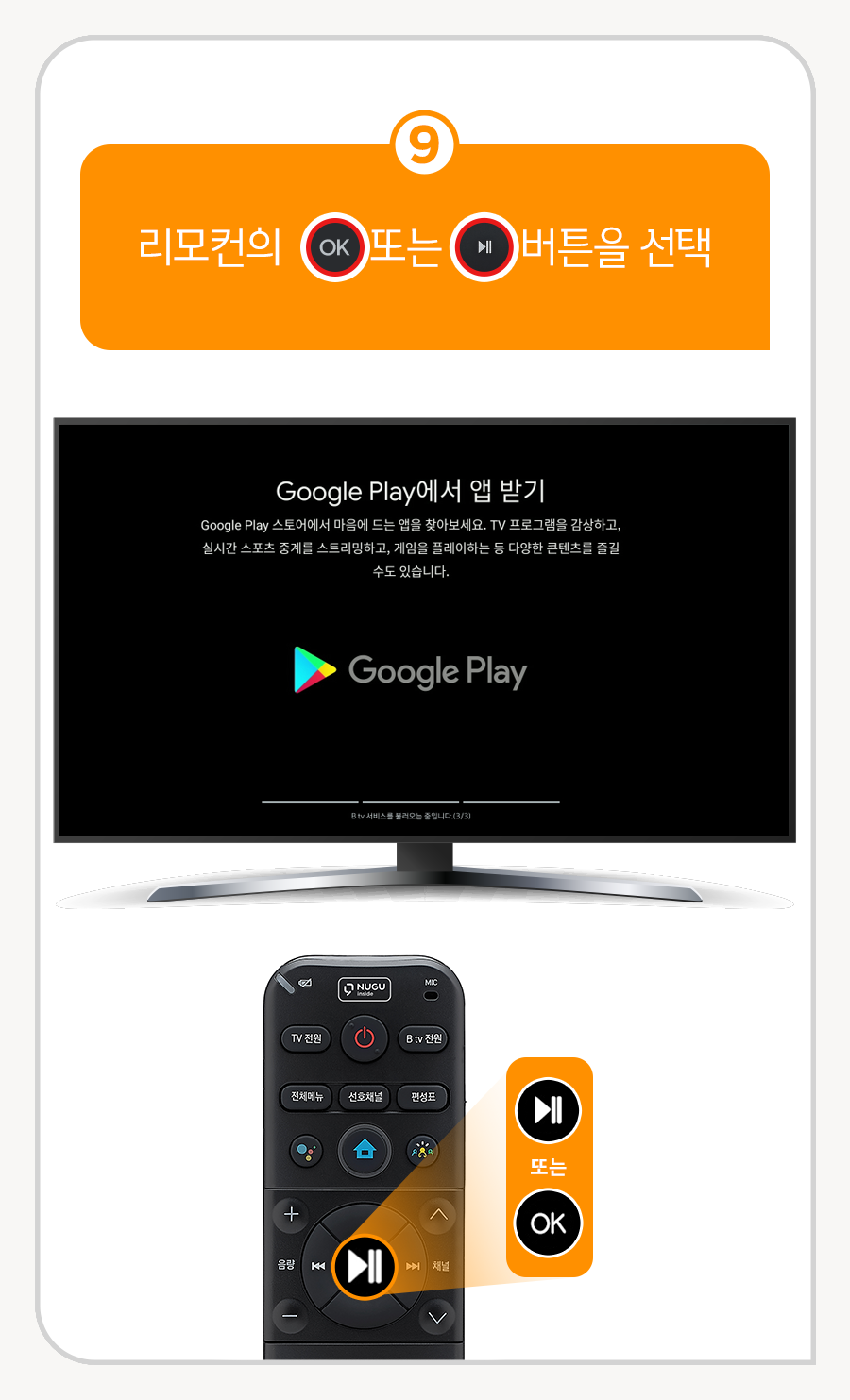 9. 리모컨의 (OK) 또는 (▶||) 버튼을 선택