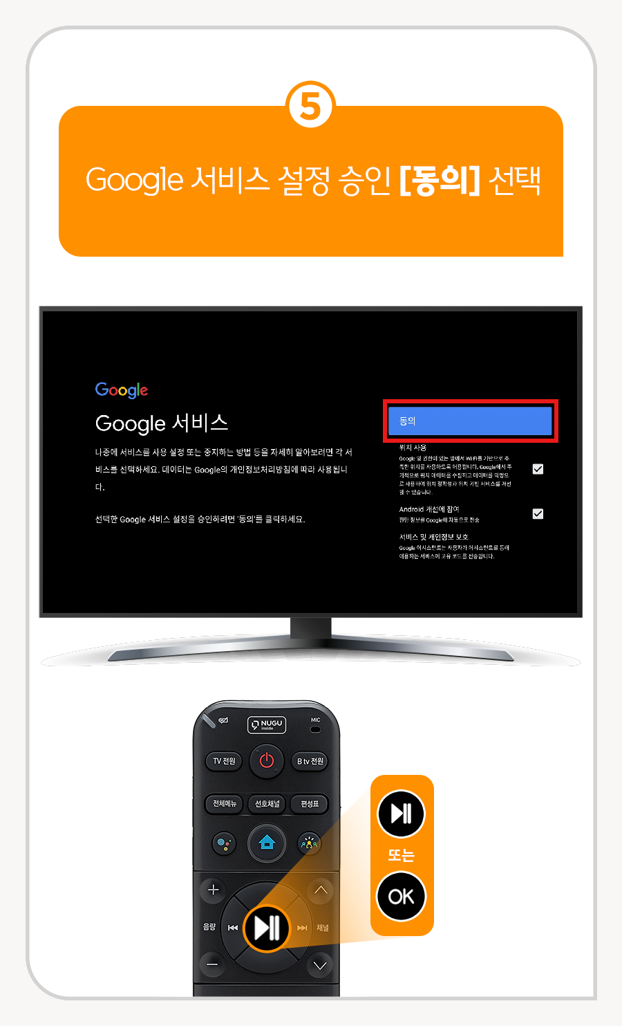 5. Google 서비스 설정 승인 [동의] 선택