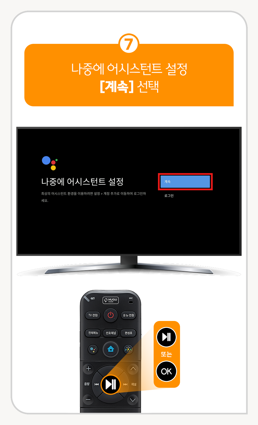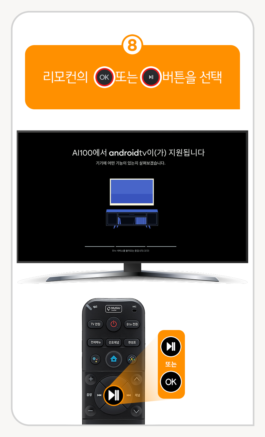 8. 리모컨의 (OK) 또는 (▶||) 버튼을 선택