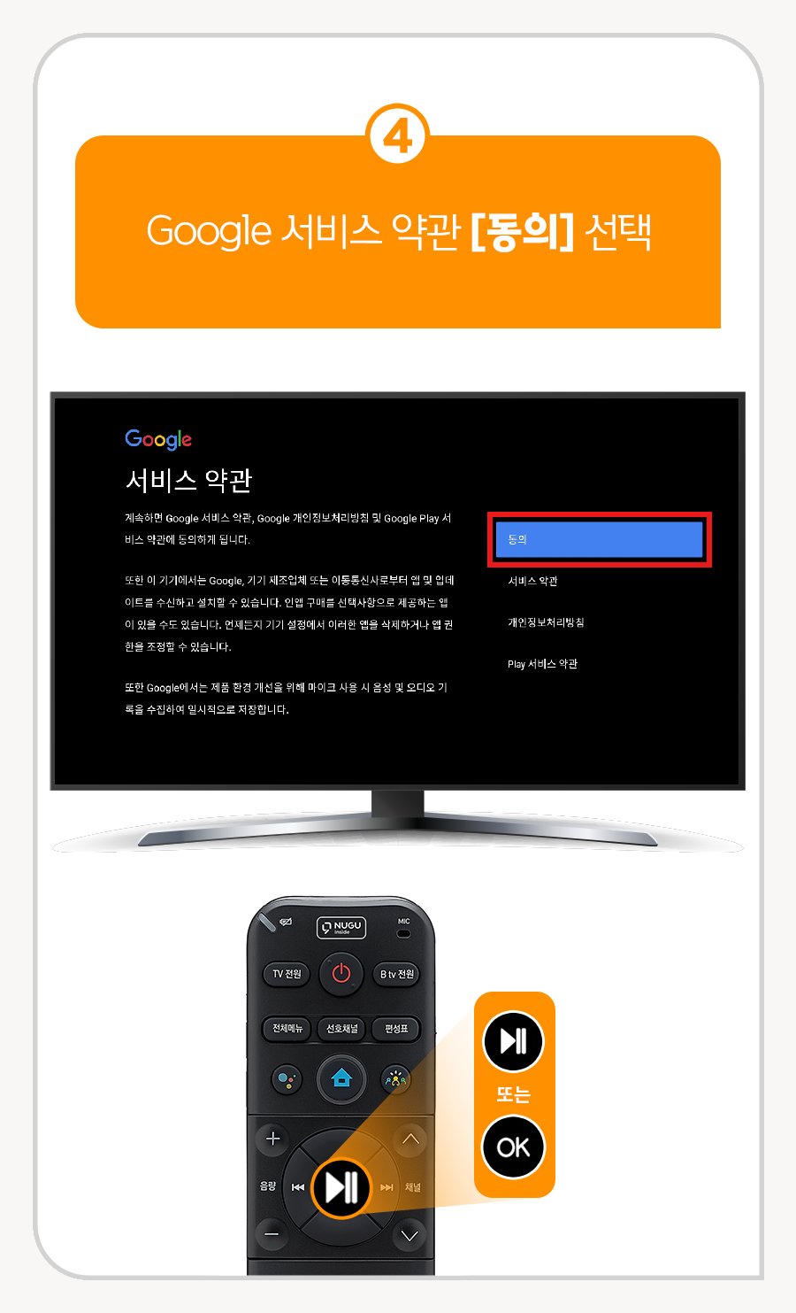 4. Google 서비스 약관 [동의] 선택