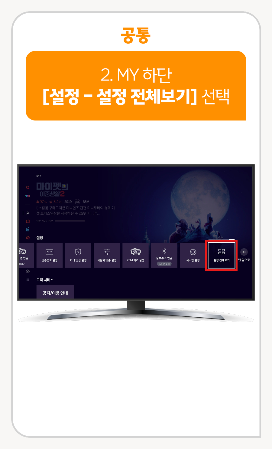 1. 리모컨 홈 버튼 누른 후 'MY'로 이동
