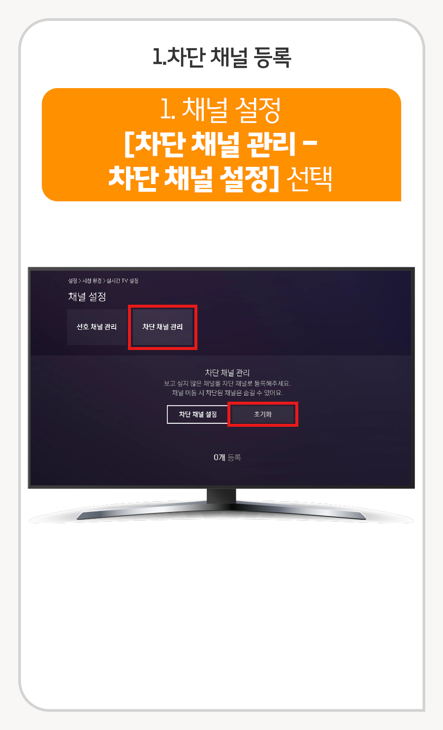 1. 채널 설정 [차단 채널 관리 - 차단채널 설정] 선택