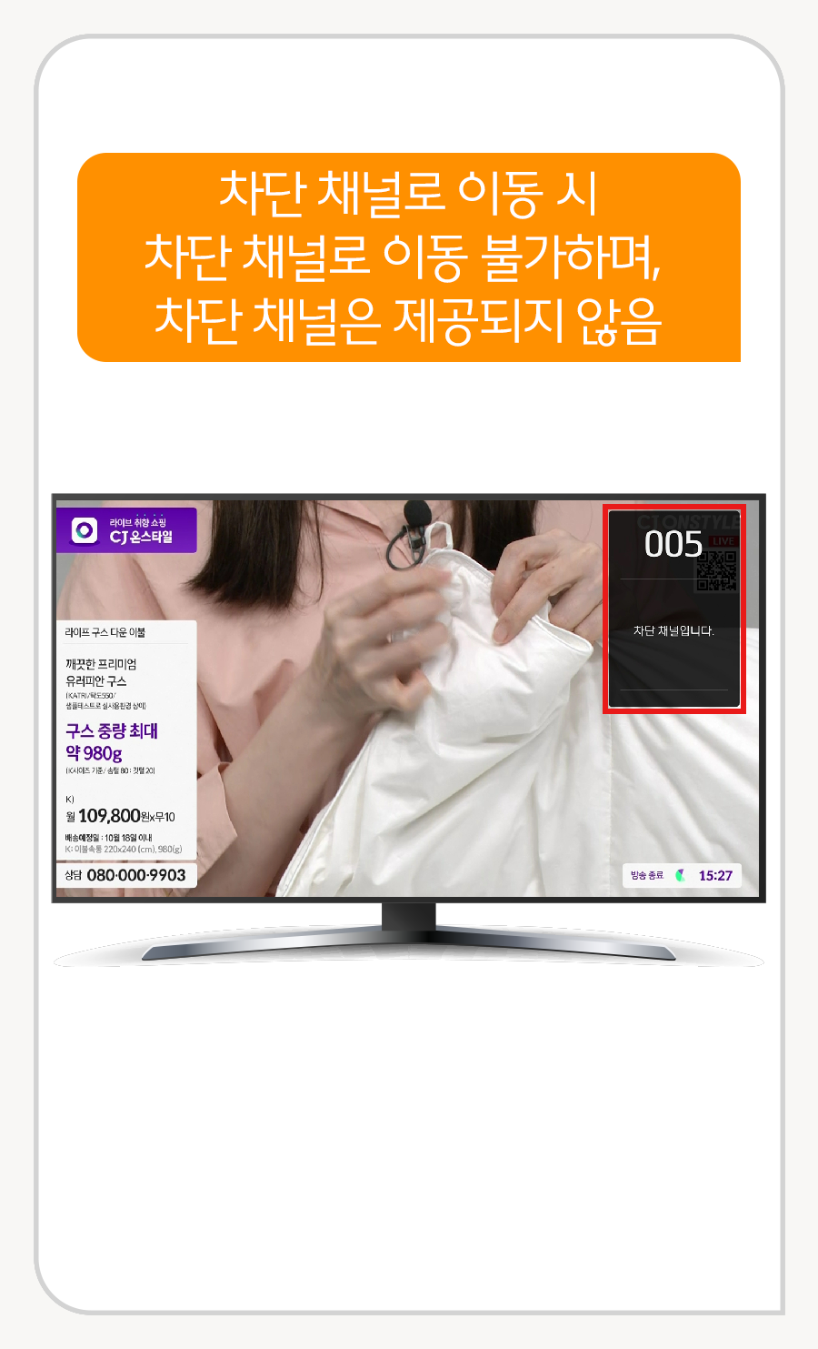 차단채널로 이동 시 차단 채널로 이동 불가하며, 차단 채널은 제공되지 않음