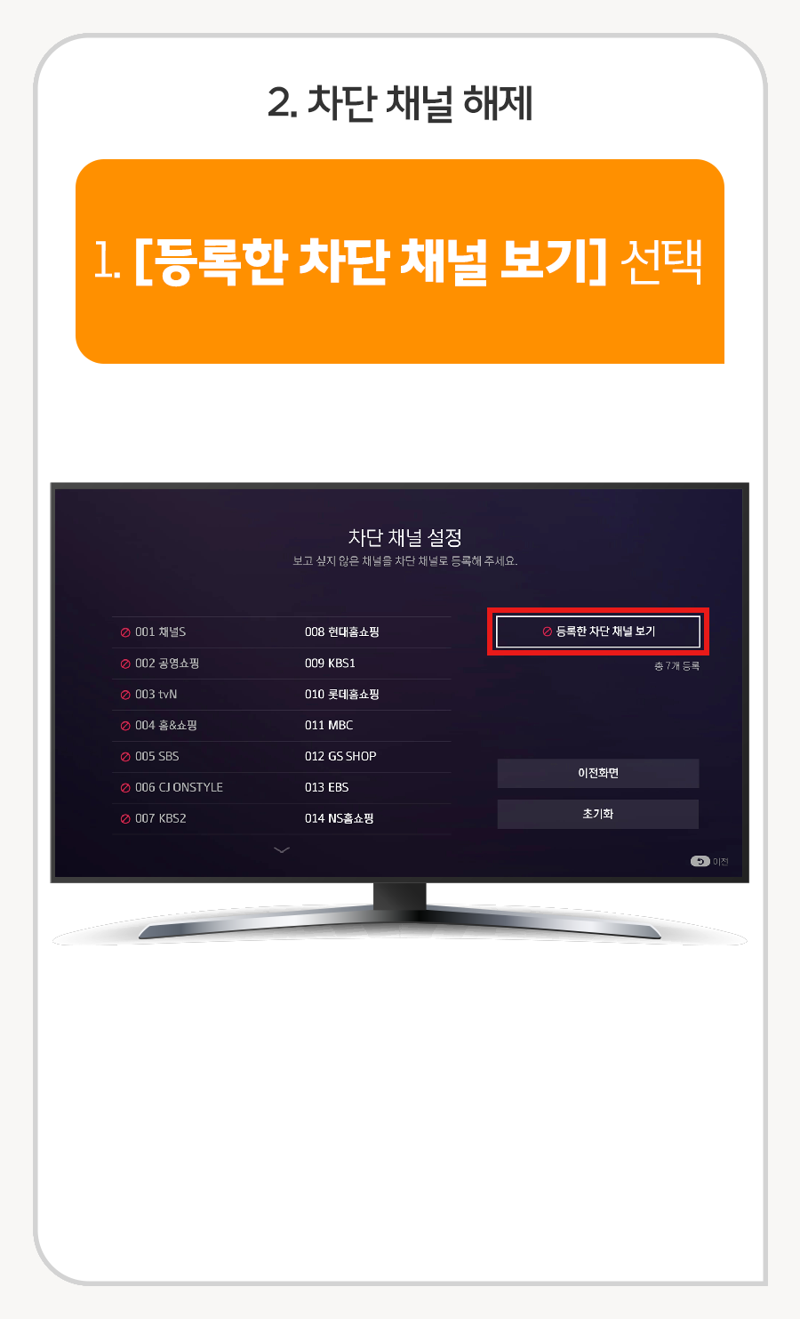 보고 싶지 않은 채널을 차단 채널로 등록하면 채널 이동 중 차단된 채널은 제공되지 않아요!