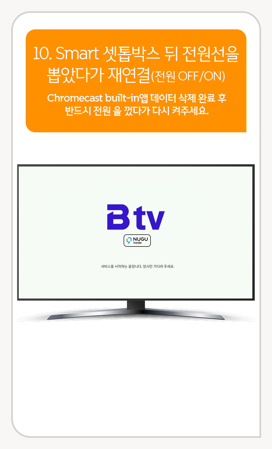 10. Smart 셋톱박스 뒤 전원선을 뽑았다가 재연결 (전원 OFF/ON)