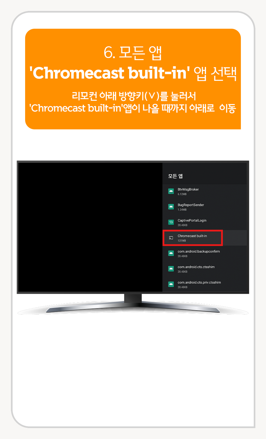 6. 모든 앱 'Chromecast built-in' 앱 선택