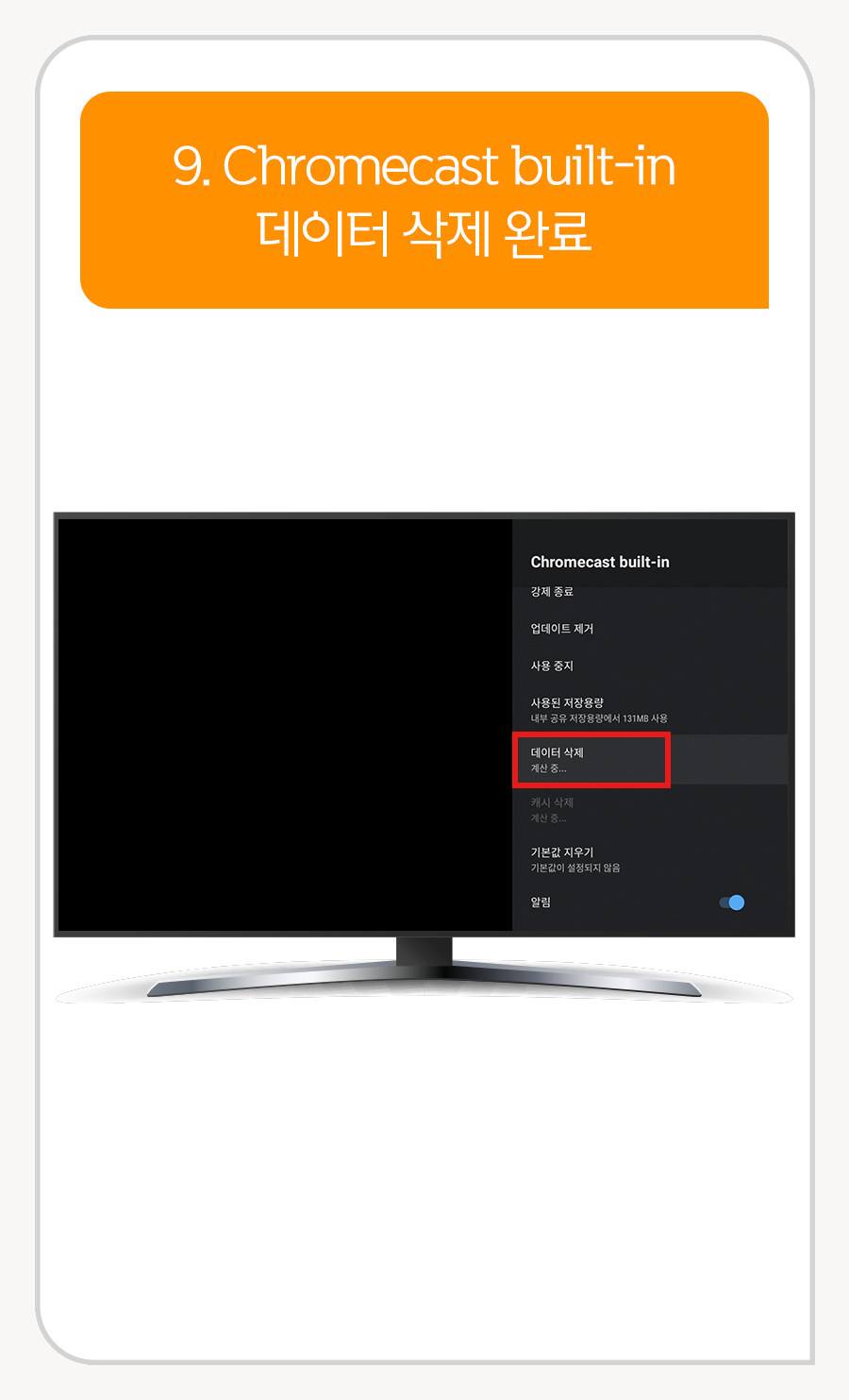 9. Chromecast built-in 데이터 삭제 완료