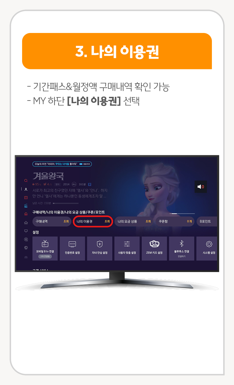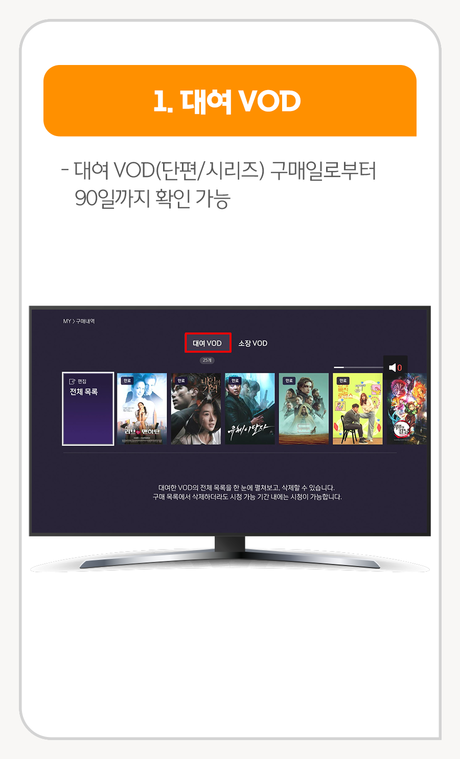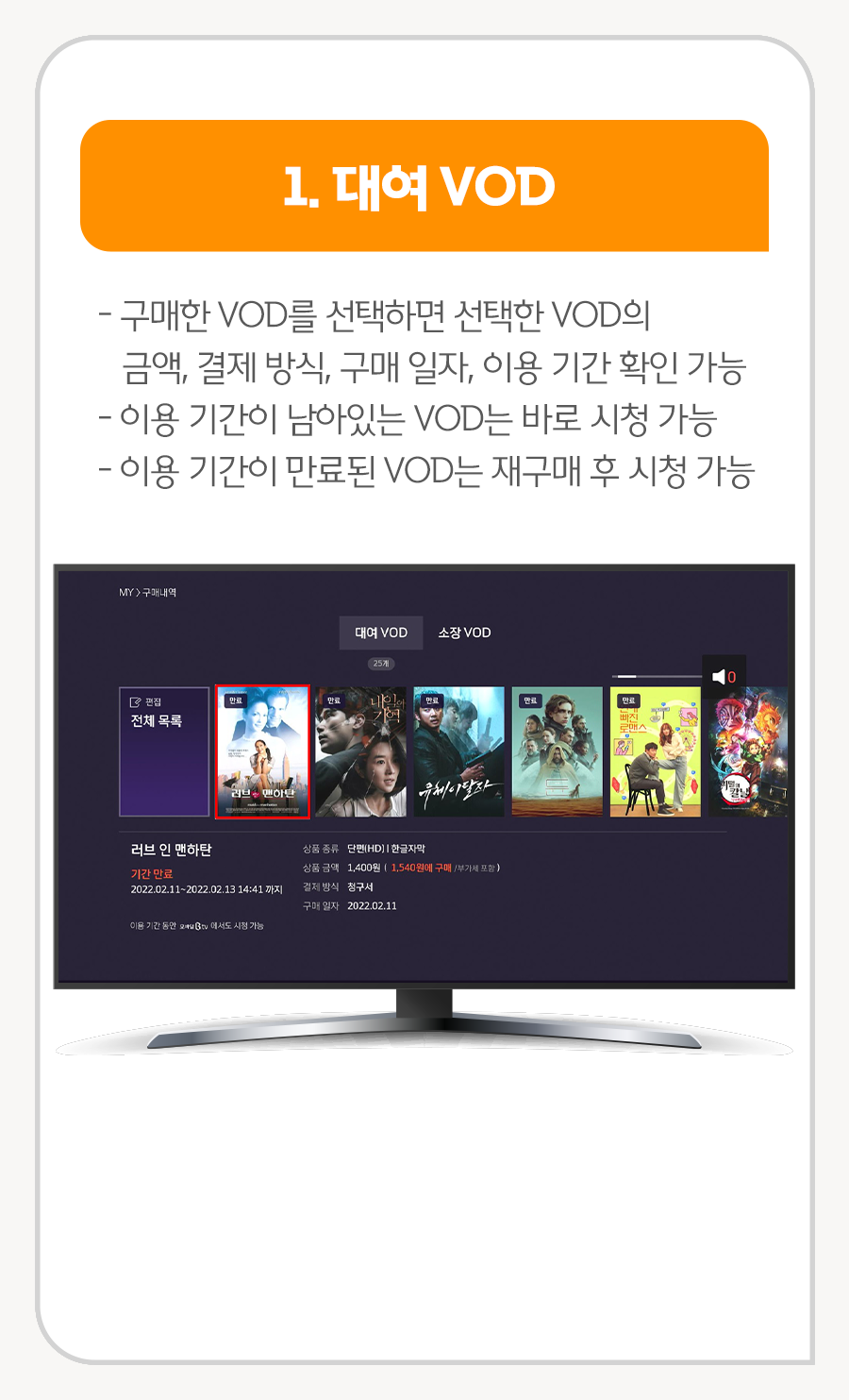- 이용기간이 만료된 VOD는 재구매 후 시청 가능