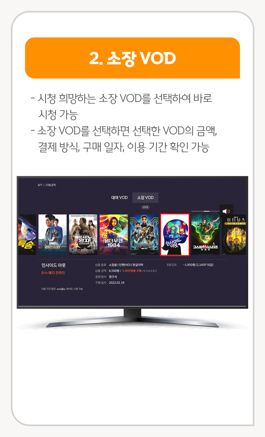 - 소장 VOD 구매일로부터 B tv 해지 전까지