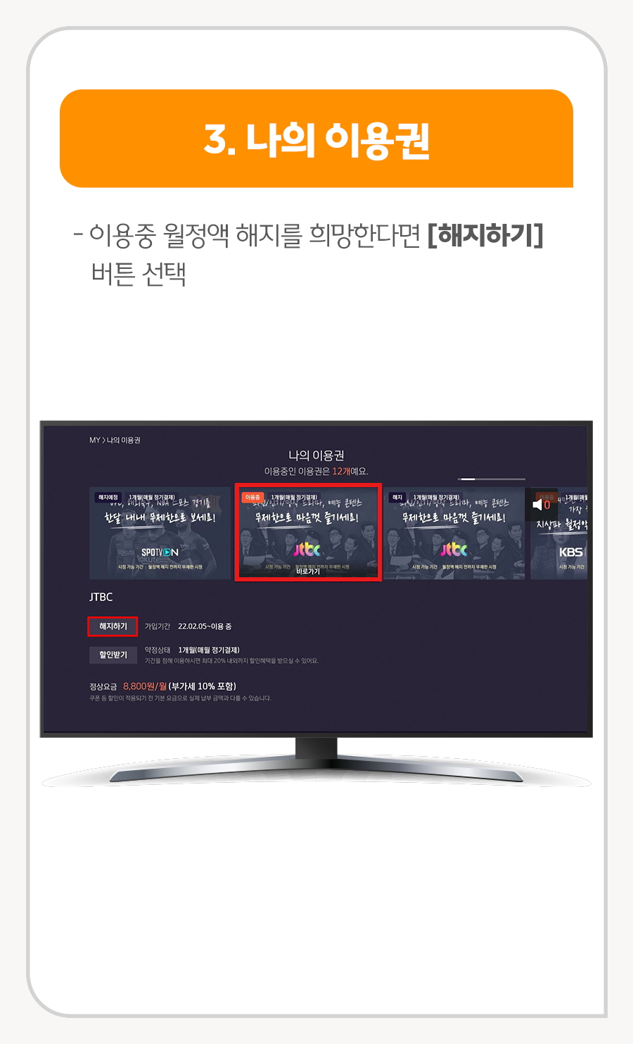 - 이용중 월정액 해지를 희망한다면 [해지하기] 버튼 선택