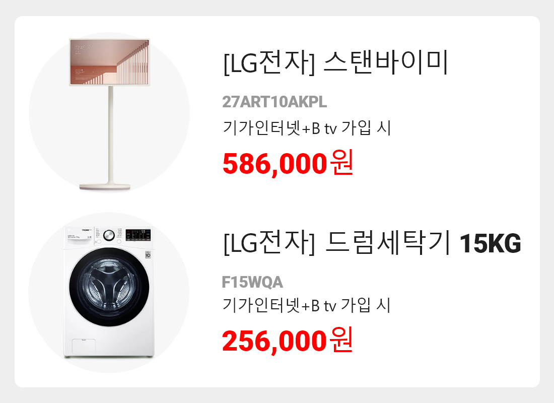 LG전자 스탠바이미, LG전자 드럼세탁기 등 다양한 프리미엄 사은품을 선택하실 수 있답니다.