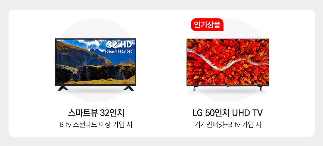 B tv 스탠다드 이상 가입 시 스마트뷰 32인치 TV를 무료 사은품으로 제공합니다.