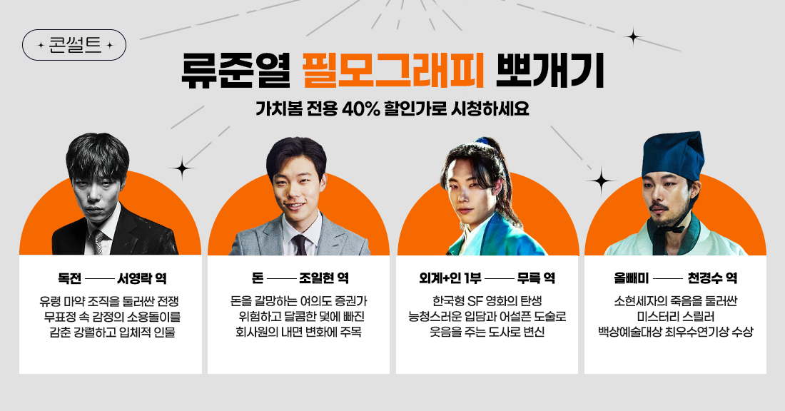 류준열 배우 하면 떠오르는 캐릭터를 B tv에서 가치봄 전용 40% 할인가로 만나보세요!