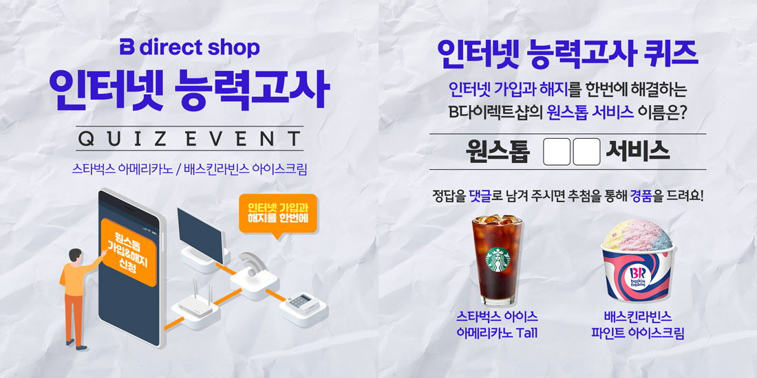 (B다이렉트샵/B tv 케이블샵에서 원스톱 전환서비스를 이용하여 기존(타사) 서비스 해지 후, 인터넷 신규 개통까지 완료하신 고객)