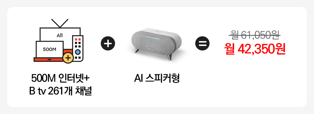 감각적인 디자인의 AI 스피커형 셋톱박스까지 월 요금 42,350원에 사용하실 수 있어요.