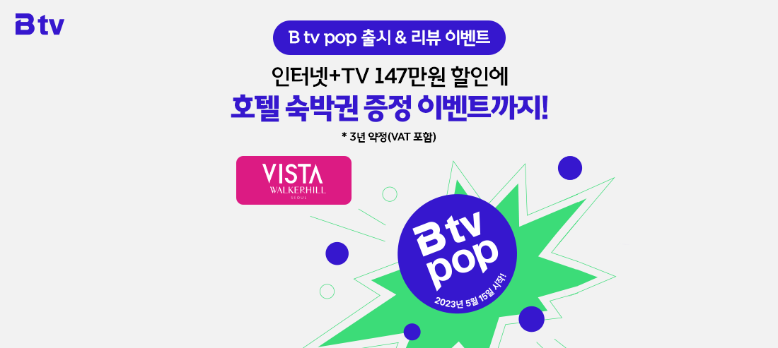B tv pop의 기존/신규 고객님을 대상으로 진행되며 2023년 7월에서 8월까지만 참가하실 수 있어요!